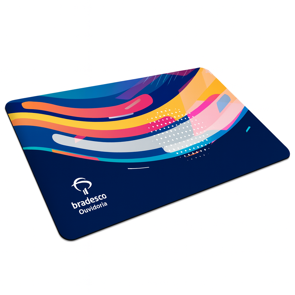 O formato retangular no tamanho 23x17 cm oferece área adequada para movimentação do mouse e excelente espaço para personalização. A impressão digital permite aplicação de artes em alta resolução, com fidelidade de cores e reprodução detalhada de logotipos, imagens e layouts completos, garantindo forte presença visual da marca.